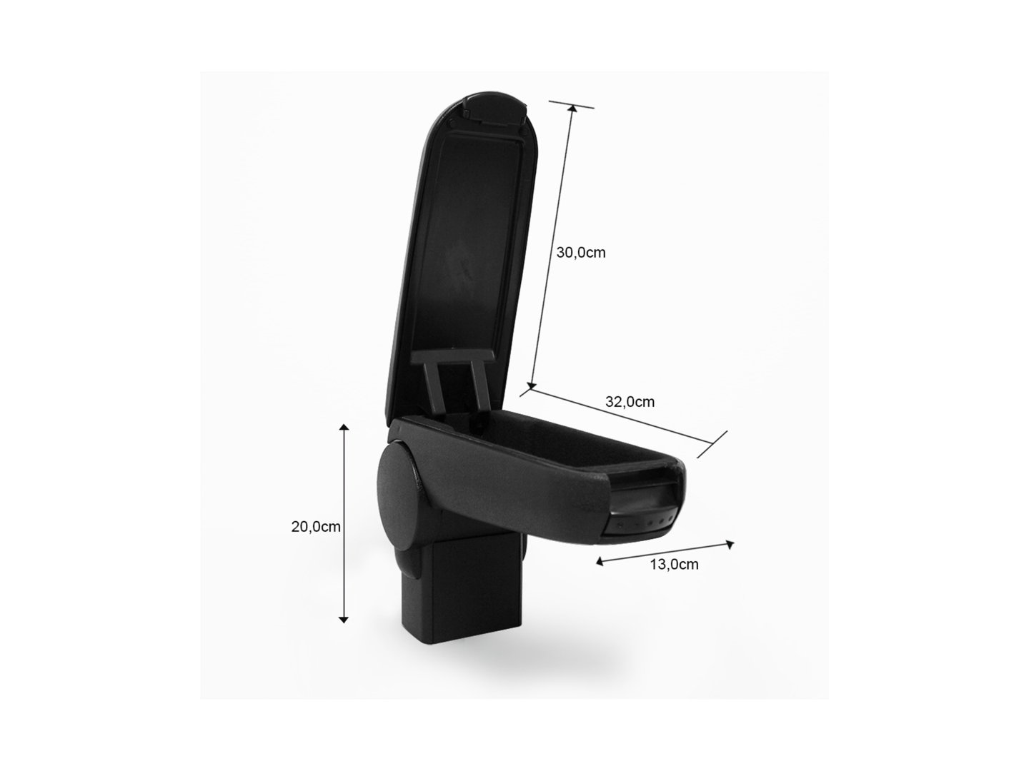 Přesně pasující loketní opěrka mezi přední sedadla vozu. Doplněk, sloužící k odložení drobných věcí uvnitř, zároveň poskytuje pohodlí pro pravou ruku řidiče během jízdy. Kvalitní provedení z odolného platu a pevné látky funkčně doplní interiér vozu.Montáž: