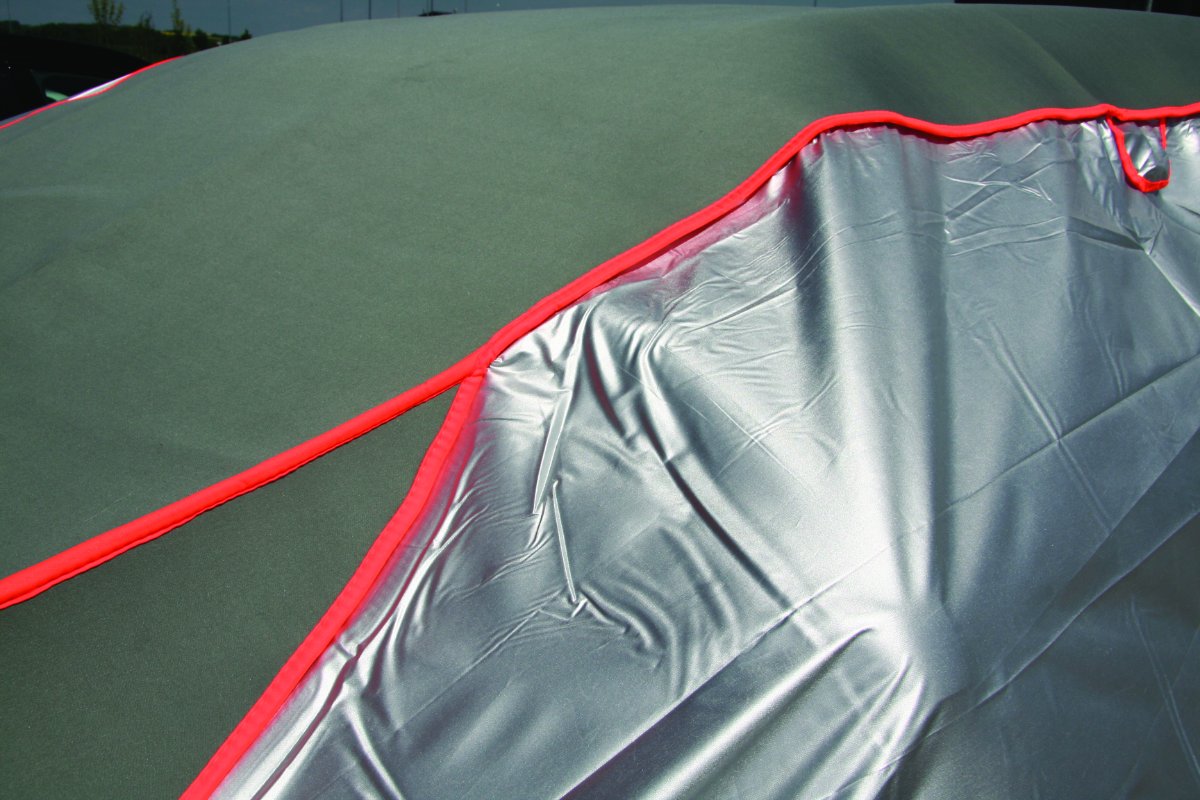 Prémiová ochranná plachta navržená pro celoroční použití. Spolehlivě chrání vůz před extrémními povětrnostními vlivy jako jsou krupobití, silný déšť či sníh. Díky vyztužené horní části s 5mm neoprenovou střední vrstvou dokáže efektivně absorbovat nárazy krup o velikosti až 12 mm při rychlosti do 74 km/h.