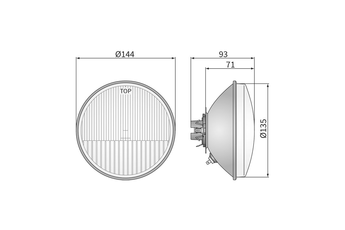 Parabola je určena pro napájení 6–12 V DC, což ji činí ideální volbou pro starší motocykly a malé pracovní stroje. Kompaktní rozměry O144 / 135 × 93 mm umožňují snadnou montáž do původních reflektorových jednotek bez nutnosti úprav. Kvalitní optika zajišťuje rovnoměrný a jasný světelný výkon při nízké spotřebě energie.