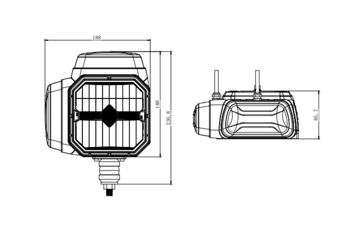 Reflektor je vybaven odolným hliníkovým tělem a skleněným krytem, které chrání vnitřní komponenty před nárazy, prachem i vlhkostí. Vysoká třída krytí IP67 a homologace R10, R148 a R149.