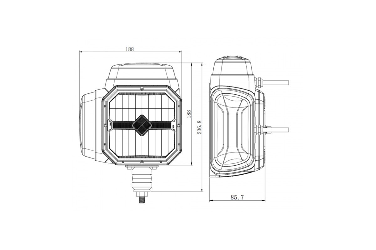 Přední světlo s vyhřívaným krytem je navržen pro maximální bezpečnost a viditelnost nákladních vozidel za všech světelných i povětrnostních podmínek. Díky 48 výkonným LED diodám a 5 integrovaným světelným funkcím (mlhové, dálkové, potkávací, směrové a poziční světlo) zajišťuje vynikající osvit vozovky a výraznou přítomnost vozidla v provozu.