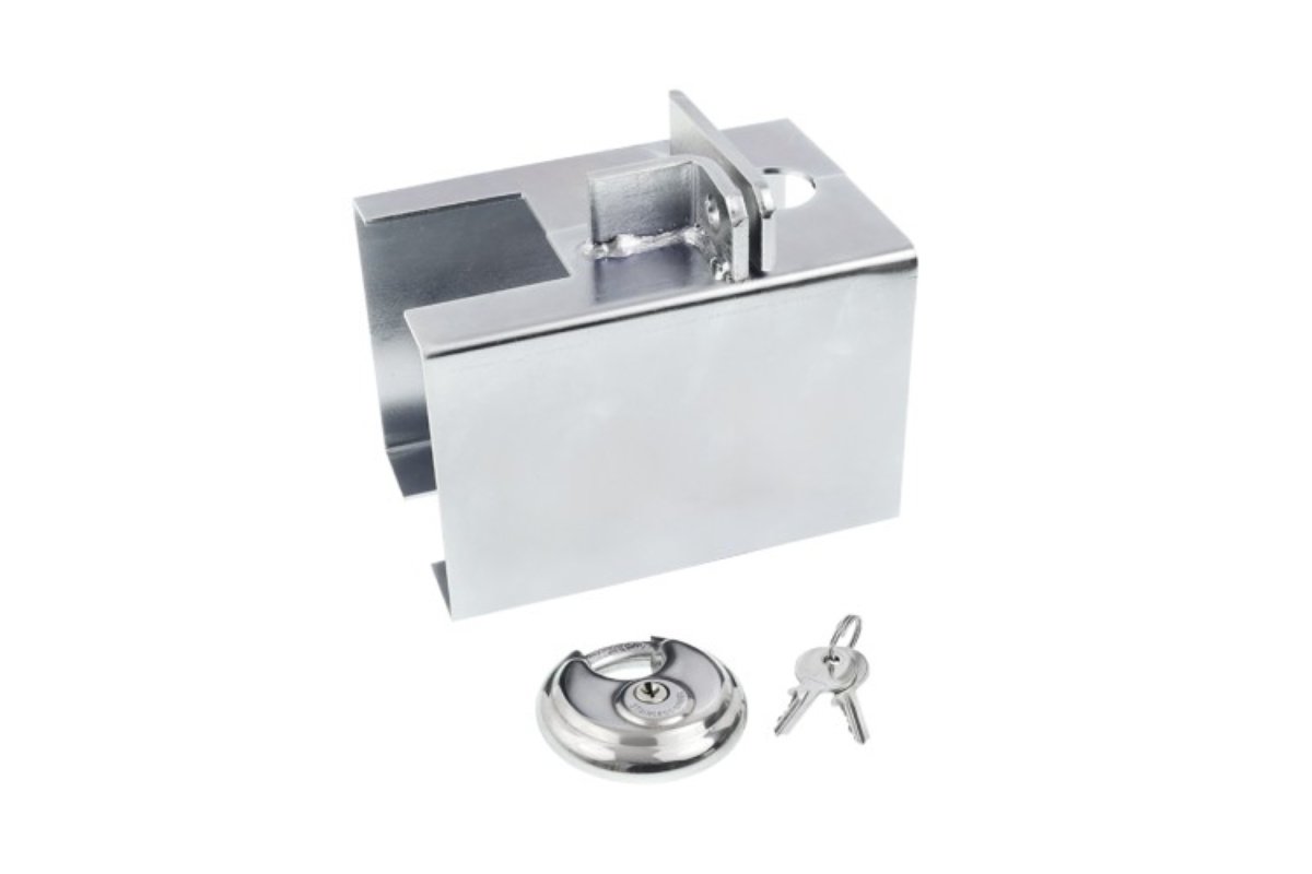 Bezpečnostní zámek kulového závěsu je určen pro ochranu přívěsu proti neoprávněné manipulaci nebo odcizení. Robustní konstrukce účinně blokuje přístup ke spojovacímu zařízení a zabraňuje připojení přívěsu k tažnému vozidlu. Zámek je vybaven visacím zámkem o velikosti 70 mm, který zajišťuje spolehlivé uzamčení a snadné použití.